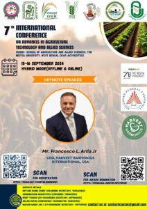 Clearwater, Florida – August 16th, 2024 – Harvest Harmonics International, a leading innovator in agricultural technology, proudly announces that its CEO and Founder, Francesco Arlia Jr., will deliver a keynote address at the 7th International Conference on Advances in Agriculture Technology and Allied Sciences (ICAATAS 2024). The prestigious event will take place in a hybrid format on September 15-16, 2024, at The Neotia University, West Bengal, India.