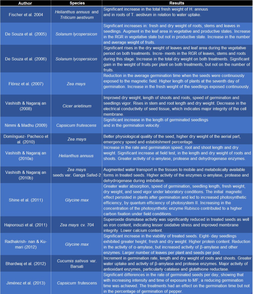 Table 1. Research on the effect of magnetic fields in plants.